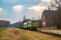 ST44-1204 w towarzystwie SM42-1286 ze składem pociągu TKS 553019 relacji Pieniężno - Braniewo mija okolice wsi Bobrowiec. Pociąg zbliża się do stacji końcowej - tam zostanie połączony z drugim wahadłem Tadds'ów, które zostały przetransportowane z Pieniężna dzień wcześniej, by wieczorową porą odjechać jako pociąg w relacji do Rzepina, a następnie do finalnego odbiorcy w Niemczech.