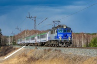 Siódemka z pociągiem TLK 58103 Żuławy rel. Olsztyn Główny - Szczecin Główny mija na biegu stację w Damnicy zmierzając w deszczowe przedpołudnie w stronę Słupska.