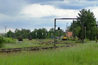 TEM-234 prowadzi ładowny pociąg z piaskiem na most zsypowy "Wojciech" w Zabrzu.