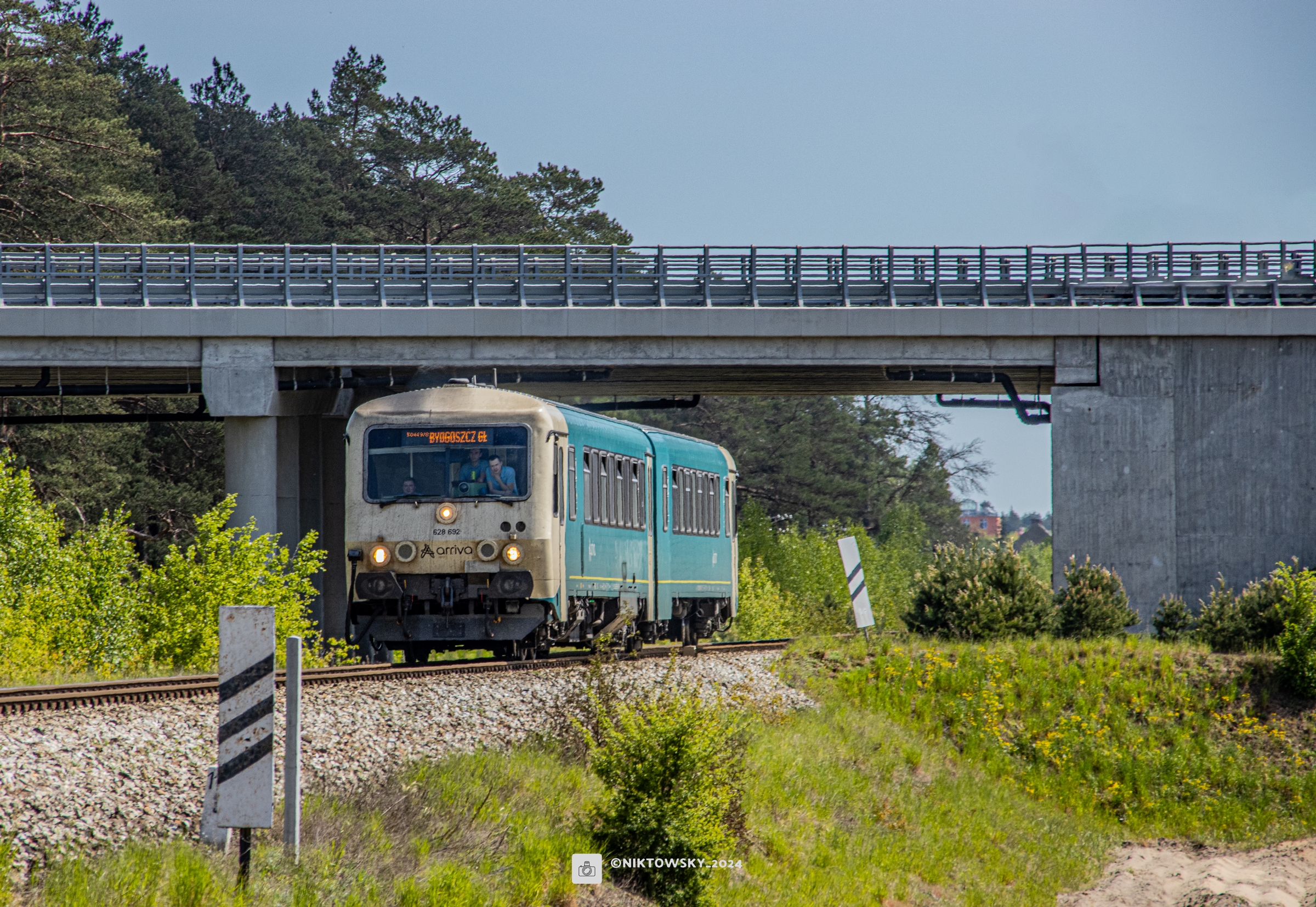 VT628/928 692 jako pociąg AR 50449 relacji Grudziądz - Bydgoszcz Główna minął wiadukt pod Autostradą Bursztynową koło Grupy