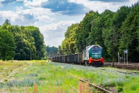 Dwa ST40s ze sznurem węglarek przecinają trasę S7, eksplorując szlak Sędziszów LHS - Łączyn.