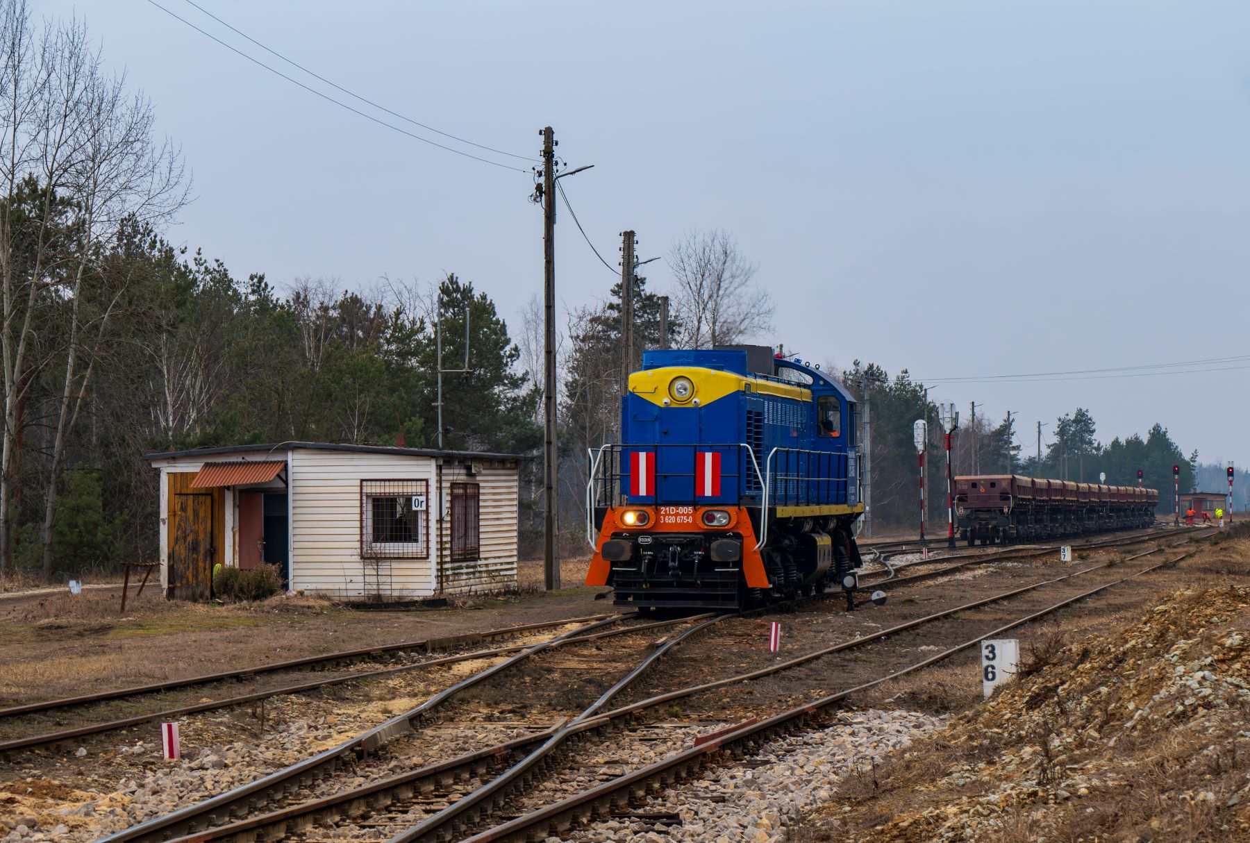 | 21D-005 podczas oblotu składu próżnych radwanów na stacji podkoparkowej Ortowice. |