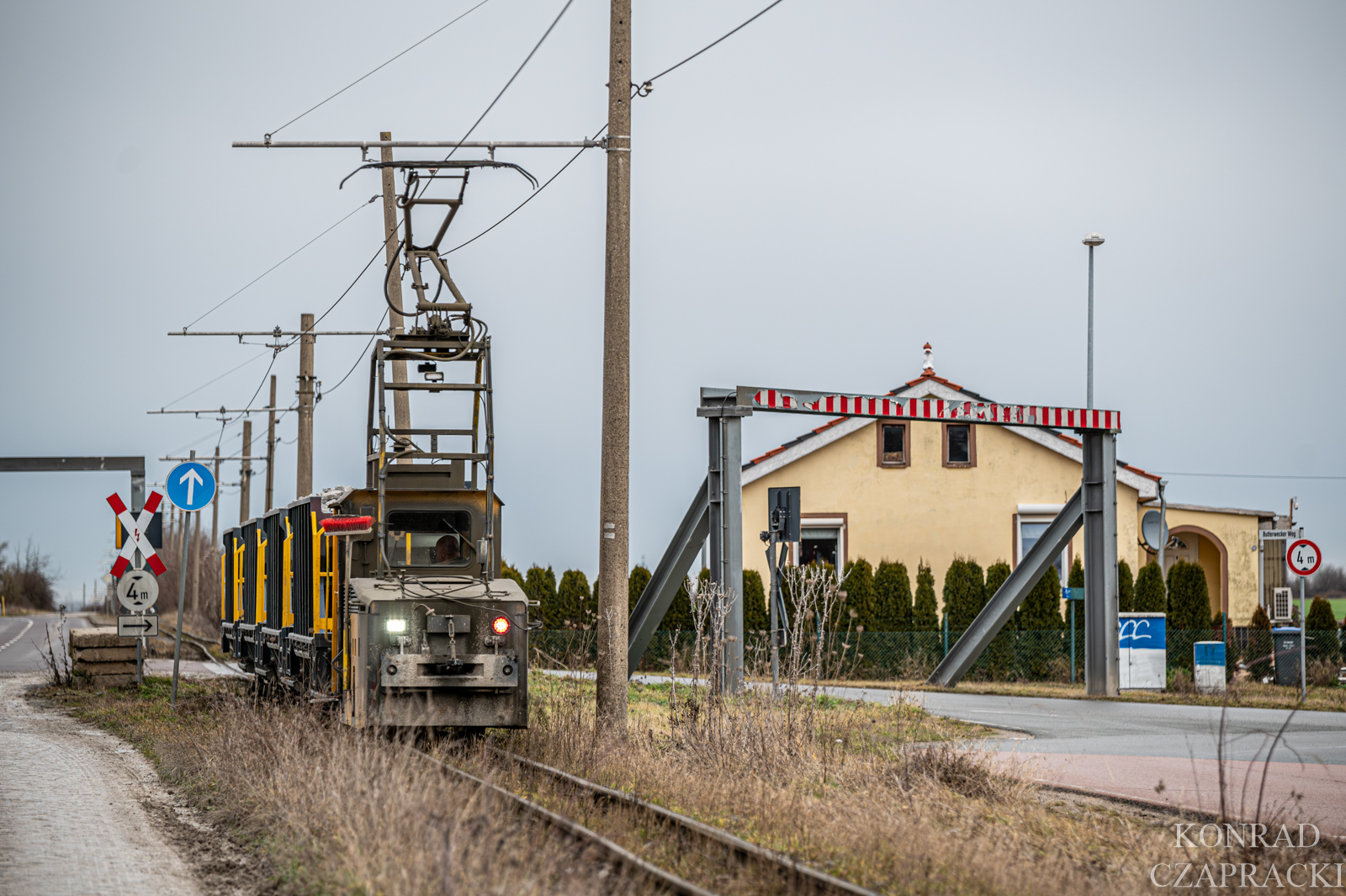 Pociąg przemysłowej kolejki wąskotorowej łączący kopalnie wapienia z urobkiem do zakładów sodowych Qemetica. Długość szlaku to zaledwie 2km a całość jest zelektryfikowana. Na zdjęciu widoczne bramki, które maja poskromić kierowców wysokich pojazdów.