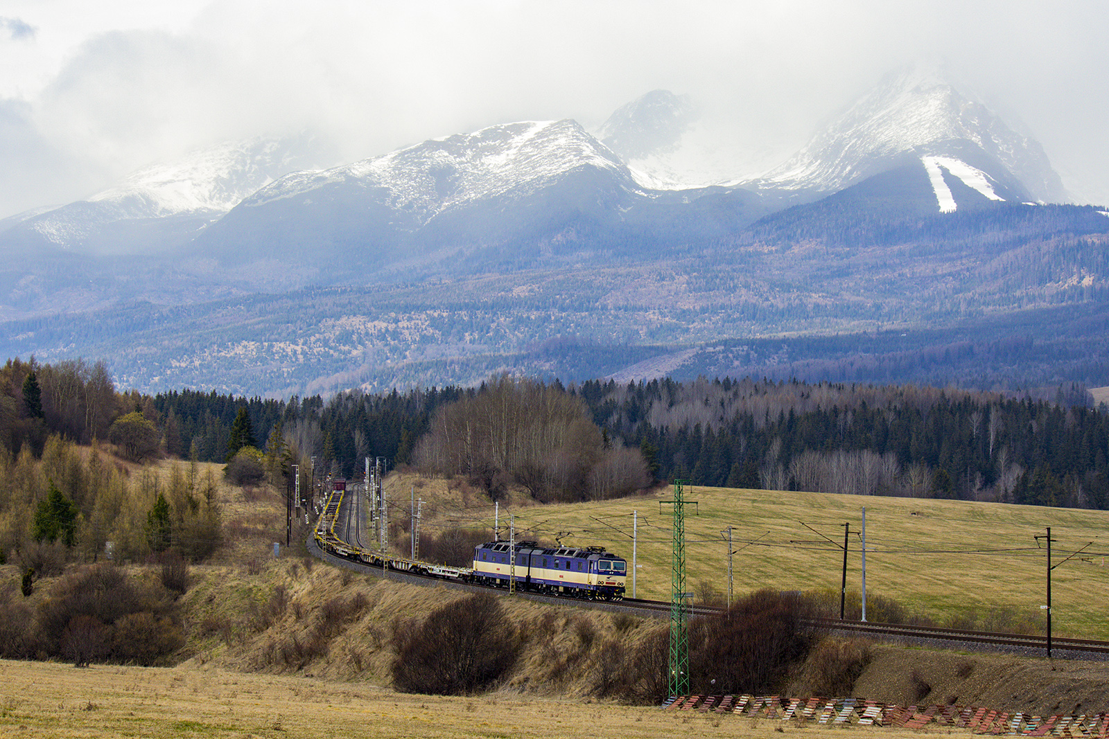 Pomiędzy stacją Štrba, a przystankiem Štrba Zastavka przemieszcza się pociąg towarowy Pn 65101 Zilina-Teplicka doch. sk - Spisska Nova Ves prowadzony przez 131 058. W tle kapryśne tego dnia Tatry