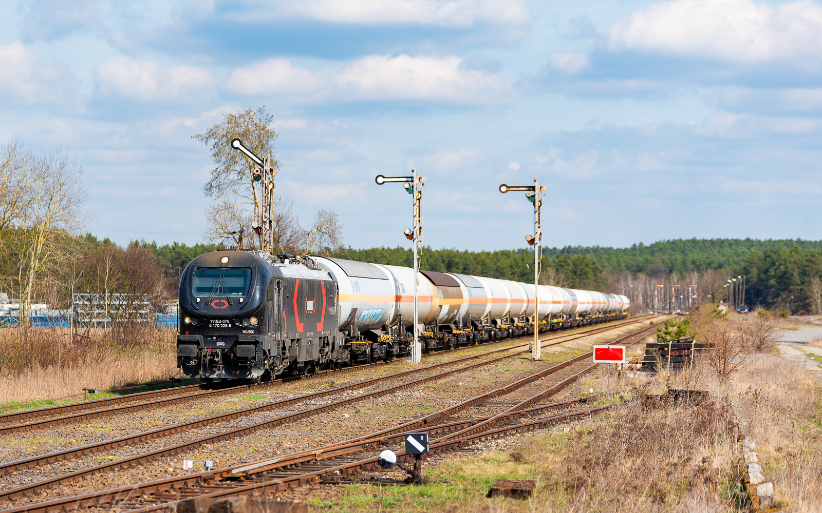 111Ed-076 "Wojtek" ze składem gazówek, przejeżdża przez Wałowice w kierunku Guben.