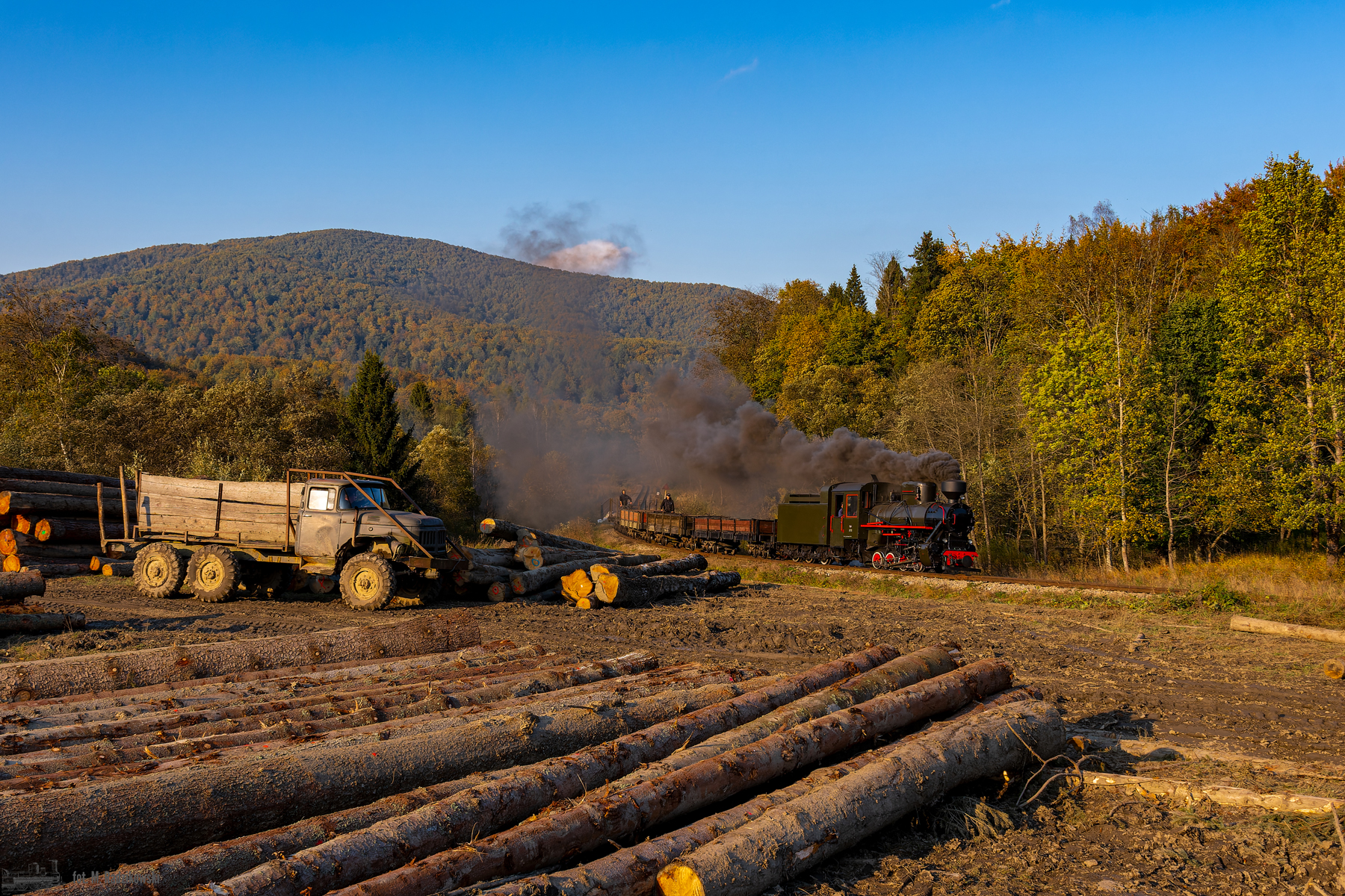 Kp4-3772 z pociągiem specjalnym relacji Majdan- Balnica, mija dawną ładownię w Solince.