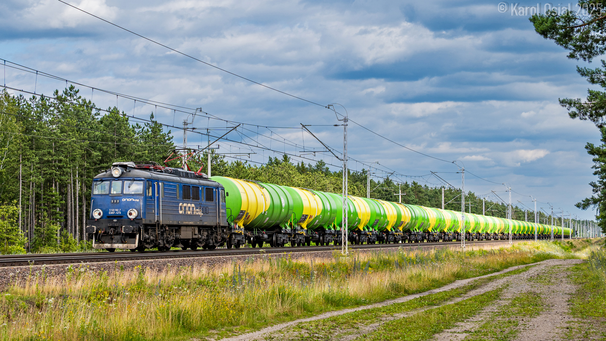 Puławy Azoty - Zarzeka | Siódemka Orion Kolej jedzie w kierunku Dęblina ze składem beczek UPG.