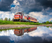 SU45-079 z pociągiem specjalnym w planie ROS 55204 "Magistrala" relacji Kościerzyna - Inowrocław, opuszcza Wierzchucin mijając trójstawną tarczę przed semaforem wjazdowym