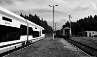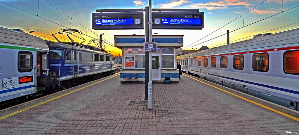 EIC Prus oraz TLK Szkuner czekające na sygnał do odjazdu.