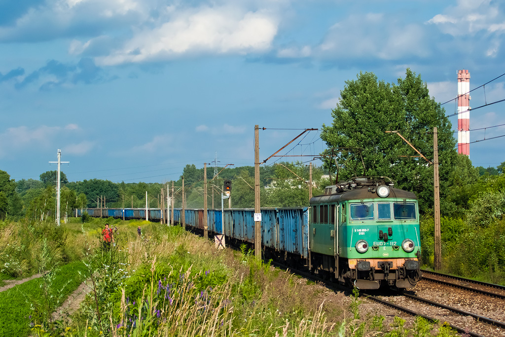 "Czy dam radę tyle wagonów? Taki długi skład... Co za czasy, żeby przeżyć, trzeba towary ciągać... a to takie ciężkie... Czy aby dobrą prędkość mam? Nie opóźnię żadnego pospiesznego?" - pomyślała EU07-112, niepewnie spoglądając w bok na słupki kilometrowe - "Ile jeszcze zostało do końca...?"