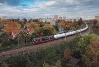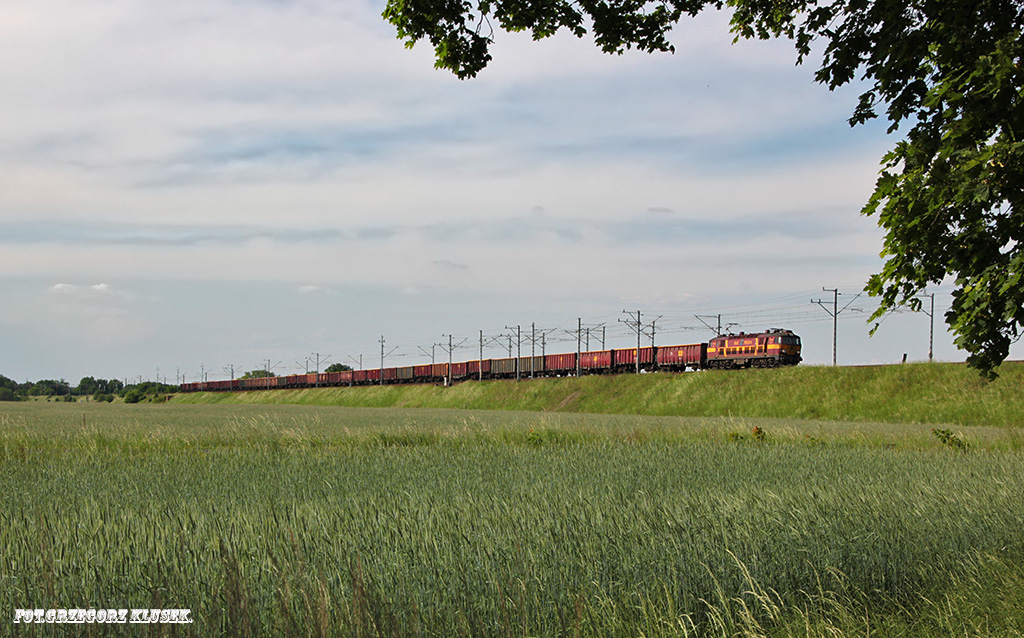 Okolice Krzyża . Byczek Rail Polska z towarem jadącym w kierunku Poznania.