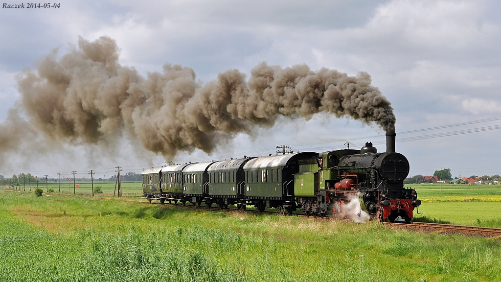 Ol12-7 prowadzi pociÄ…g retro "Roma" z Wolsztyna do Rakoniewic.
