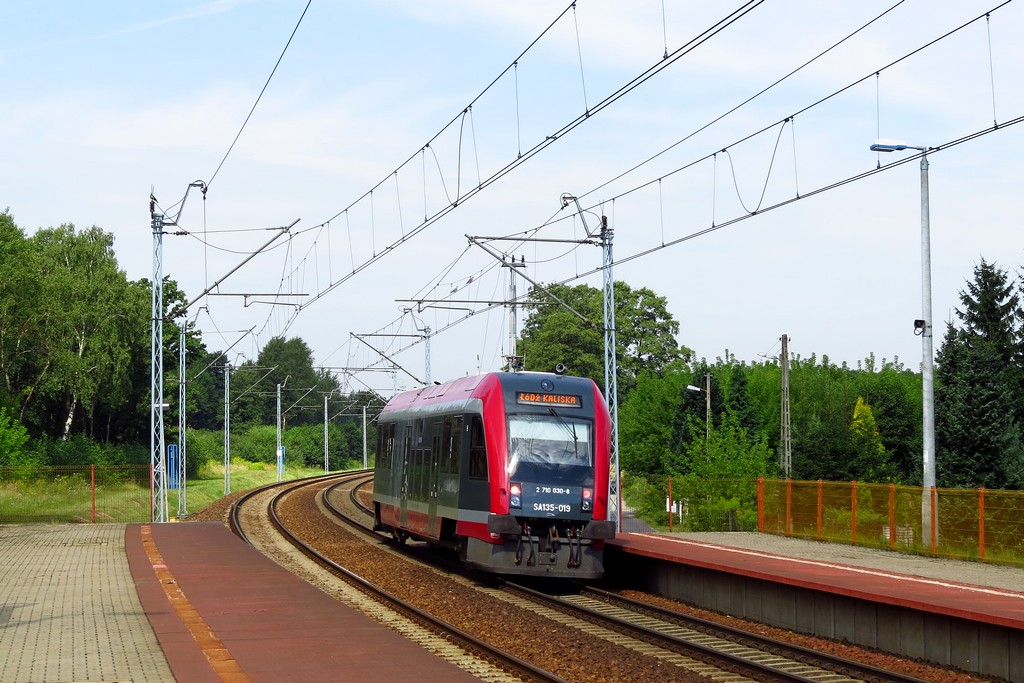 Tytułowy SA135 jako poc. R21316 z Opoczna do Łodzi Kaliskiej mija w pędzie p.o. Bedoń.