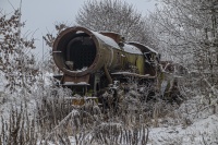 Mimo zamkniętych bram zimny, styczniowy wiatr uparcie wdzierał się do środka... Stalowe blachy wrót szarpały się na zawiasach stukając. Zimna betonowa podłoga przybrudzona sadzą, popiołem i smarami... Zimne, nieużywane już parowozy... Żarówka pod czarnym sufitem kilkukrotnie mrugnęła po czym jej ciepłe, żółte światło zgasło już na dobre... I nawet stary piec ustawiony między czarnymi kolosami był zimny...