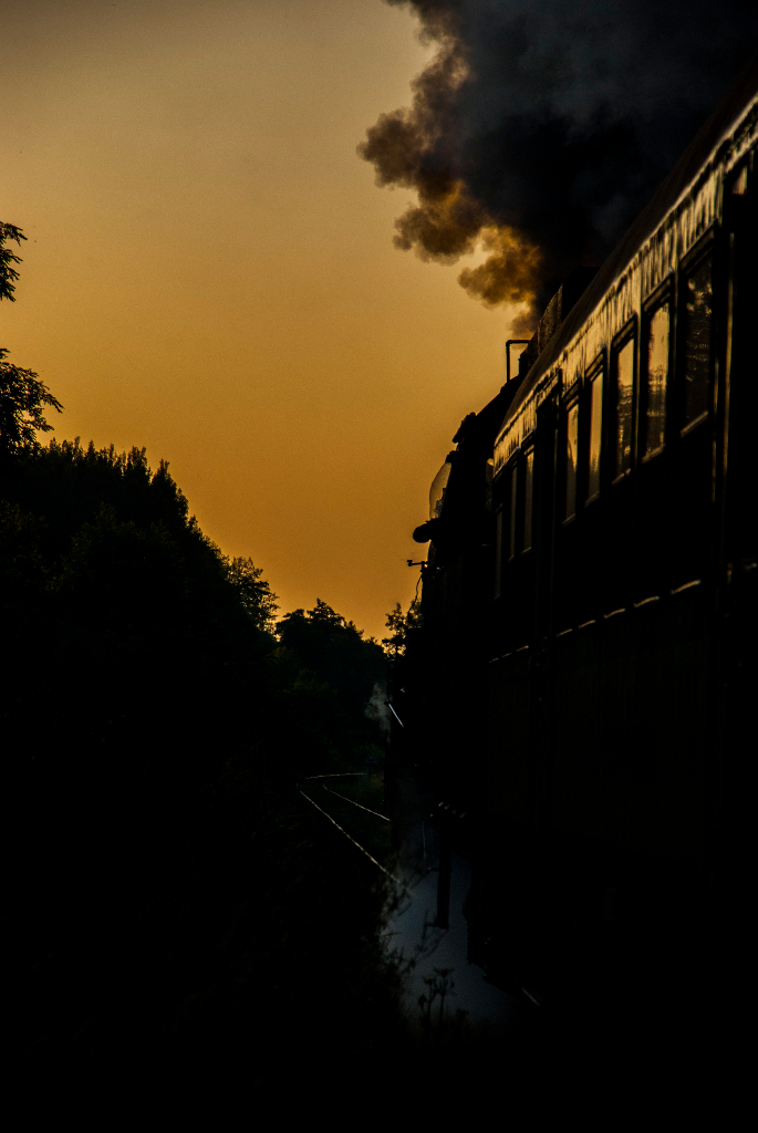 Ogólnie na zdjęciu Konrad chcial zapewne pokazać barwe nieba, światło odbijające się w wagonach i pióropusz parowozu.