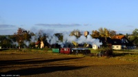 Ja bym się chyba skusił na kadr na dłuższej lufie zamykając go z lewej strony drzewkiem, z prawej strony wysokimi drzewami przy domu. A w samym centrum kadru parowozik i zabudowa z tyłu.
