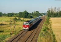 ST45-16 manewruje po próżne węglarki stojące za mną. W nocy został rozładowany z nich dolomit, który rolnicy rozsieją po polach w celu zobojętnienia gleby. Obecnie jest to jedyny ładunek, docierający do Bartoszyc drogą kolejową. Idąc na stację po cichu liczyłem, że odwiedzi mnie jeden z białostockich Gagarinów, czy choćby klasyczna stonka, która powoli staje się już rarytasem na tej linii. Z oddali usłyszałem charakterystyczne wycie nowego fiata. Pamiętam, że jeszcze tak niedawno, ze 3 lata temu człowiek latał po okolicznych liniach kolejowych, chcąc za wszelką cenę złapać lokomotywy tej właśnie serii. Dziś te "nowe wynalazki" stanowią większość na Warmii i niestety odbierają część magii Polskim Kolejom . Po lewej stronie widoczna jest zabytkowa wieża ciśnień z XX wieku. Jej celem było zapewnienie stabilnego ciśnienia wody w miejskim wodociągu. Po prawej zaś widoczny jest kawałek byłej nastawni dysponującej Bartoszyce. Została ona zlikwidowana w dniu zamknięcia stacji (31.08.2011r.).
