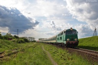Przejazd imprezowego pociągu "Fiatem do Jabłowa" przez małą stacyjkę Piesienice