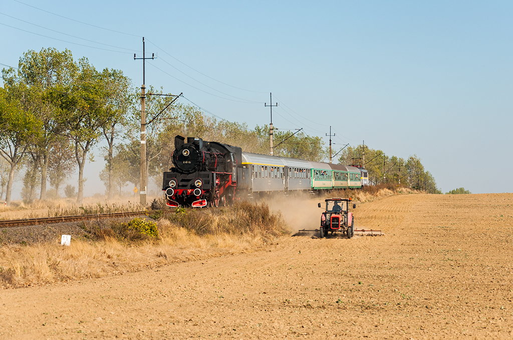 Ol49-69 wraz z pięciowagonowym składem i siódemką na doczepce, żwawo pędzi do Złotoryji, z specjalnym pociągiem "SKARB" relacji Wrocław Główny-Złotoryja.