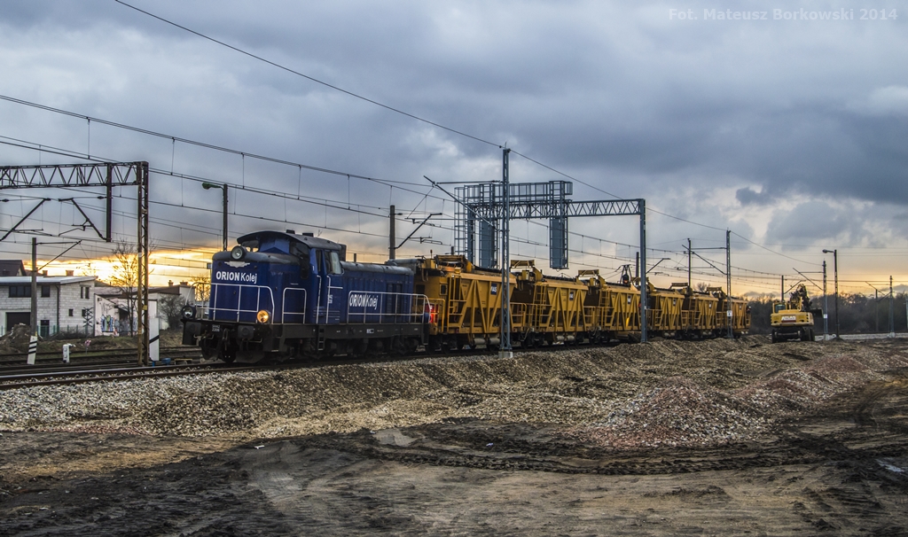 Spracowana stonka wraz z zachodem Słońca kończy pracę na pociągu roboczym przy nowym torze magistraIi E20 by rano wyruszyć gdzieś w nieznane.