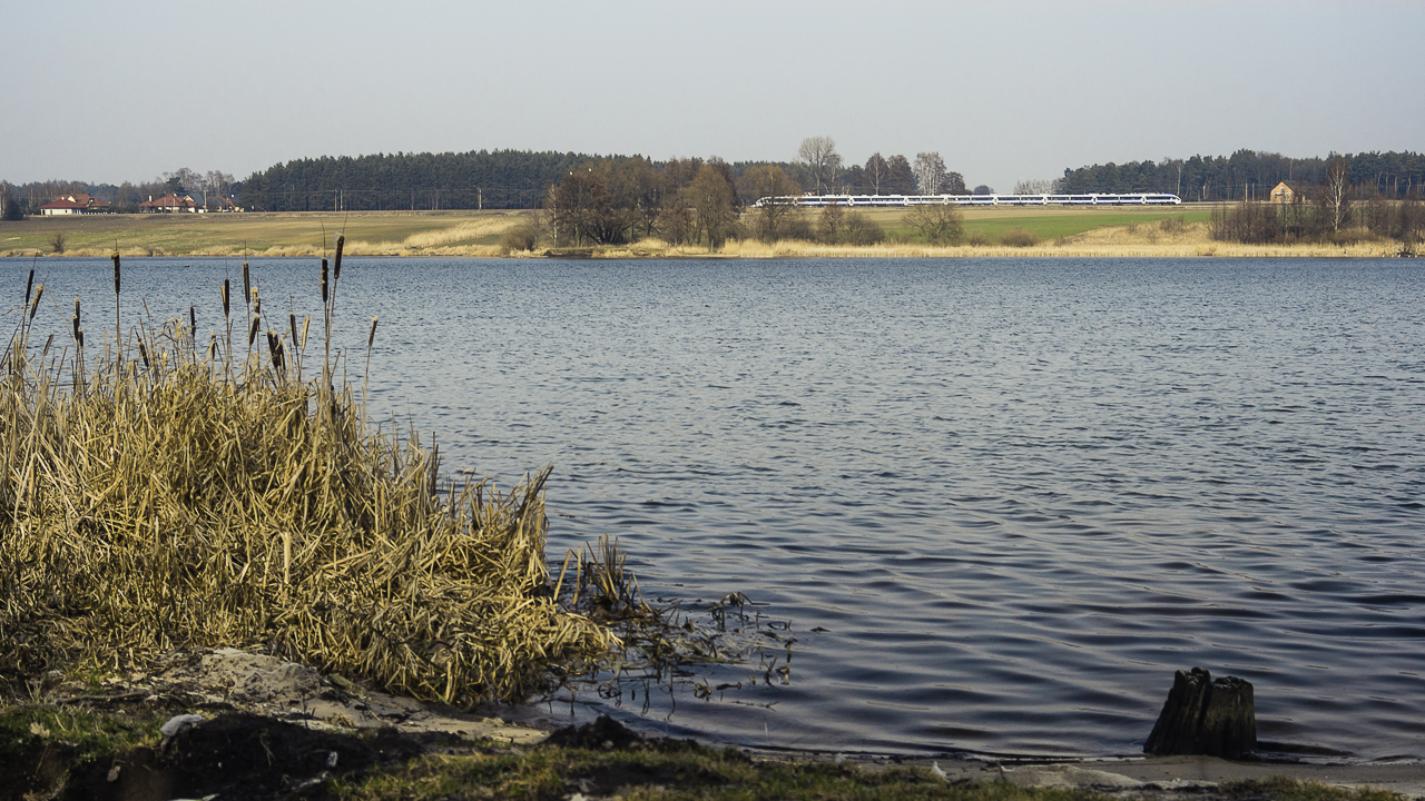 Mimo wszystko jednak, focenie przez parę godzin EZT-ów jadących 14-tką z drugiej strony Zalewu Szałe było bardzo przyjemne, zwłaszcza, że człek złakniony wiosny jak kania dżdżu. Ten na zdjęciu, niezidentyfikowany, jedzie w kierunku prawej krawędzi jako TLK (a może już IC) "Słowacki" z Breslau Hbf. do Białegostoku. Z tej perspektywy na szczęście wygląda mało "karpio"...