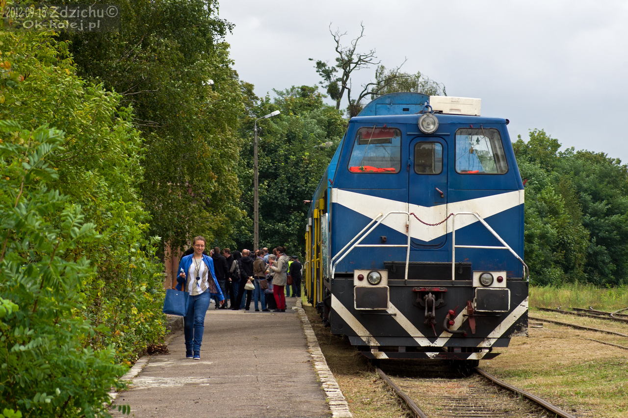 Urocza dziewczyna, lubiąca chyba niebieski kolor (nawet aparat miała niebieski), szykuje się do zrobienia zdjęcia nie mniej niebieskiej lokomotywie TGM40-0586, oczekującej na odjazd do Czempinia.