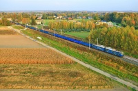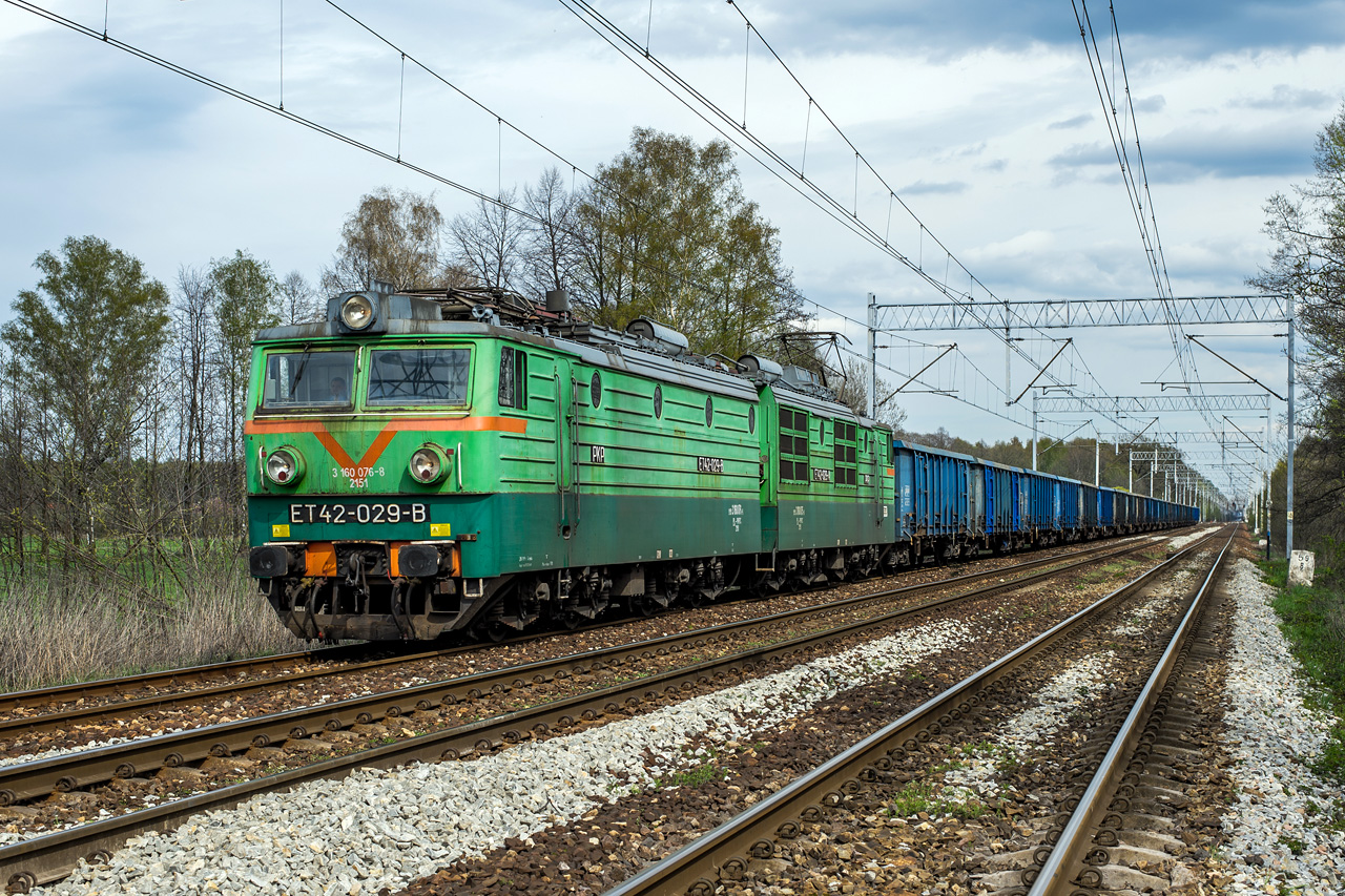 Zielony czapajew ze składem węglarek tuż przed wjazdem na stację w Chybiu.