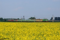 Maleńki, i to dosłownie, dwuosiowy Decauville prowadzi pociąg specjalny ze Żnina do Gąsawy, złożony z platformy i cysterny. Dość zabawne rozmiary tej maszyny od razu przywodzą na myśl zabawkowe kolejki parkowe, pomimo że parowóz ten ma rodowód przemysłowy.