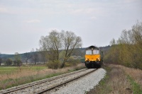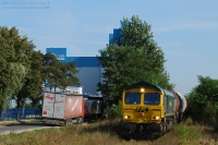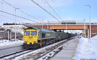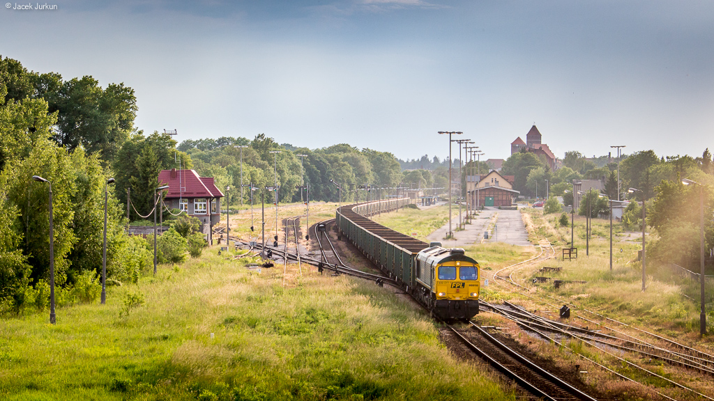 Class 66 FPL ze składem węgla mija stację Kętrzyn i kieruje się w stronę Giżycka.