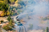 2M62У-0099 z pociągiem towarowym do Saren pokonuje podjazd na szlaku Riwne - Reszuck (Ð iвне - Решуцьк).