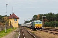 Zielona SU46-033 prowadzi zwrotnego eszelona relacji Leszno Górne - Hrubieszów. Jednostka ta wraca do siebie po 2 tygodniach manewrów wojskowych w Borach Dolnośląskich.