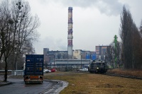 Elbląg Zdrój. Stonka CTL-u (SM42-2321) opuszcza w deszczowy poranek elbląską elektrociepłownie