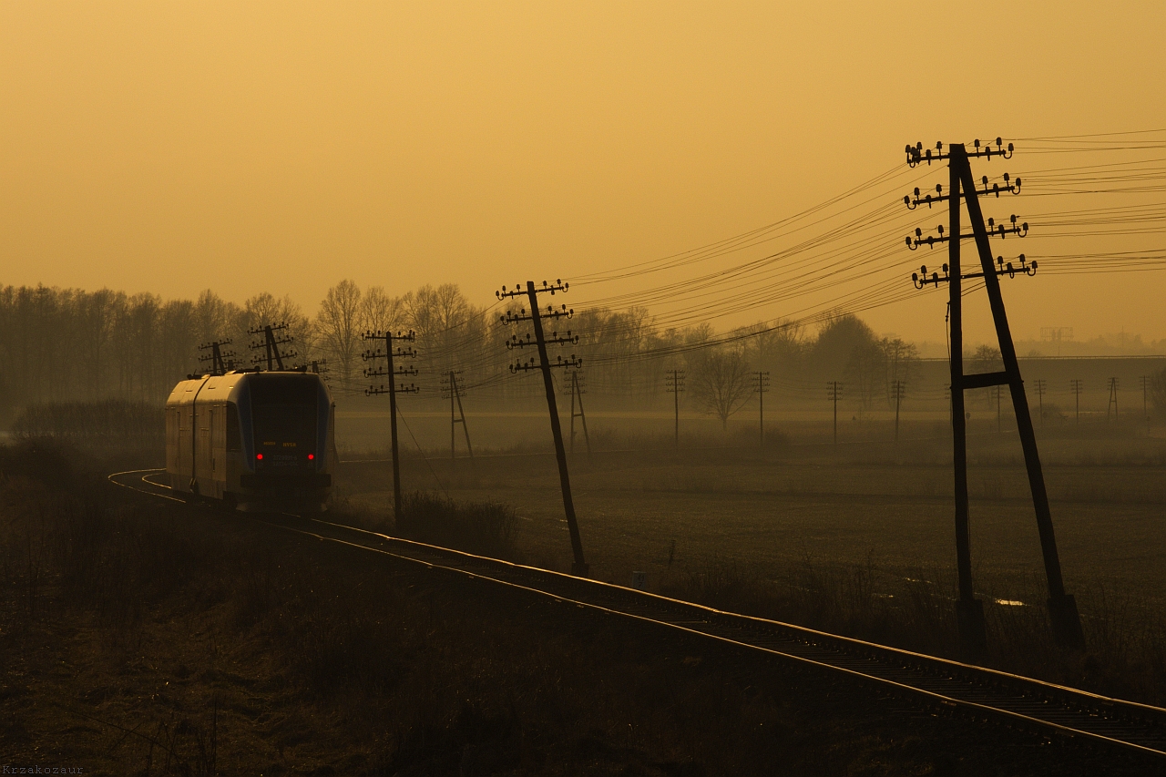 ...Wjechał szynobus, a ja się włóczę po polach, by o zachodzie podziwiać jego podwozie.