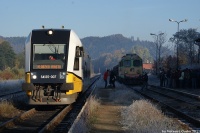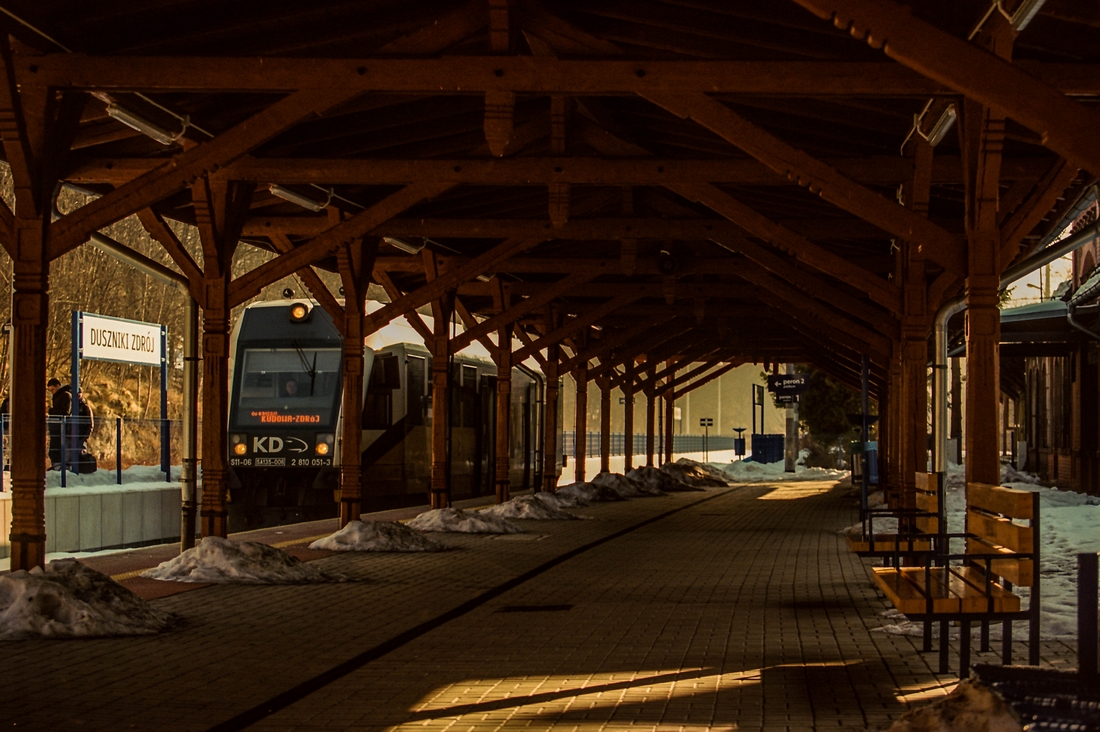 Szynobus SA135-006 Kolei Dolnośląskich zatrzymał się na stacji Duszniki Zdrój. Po mijance z przepełnionym szynobusem do Wrocławia ruszy do Kudowy Zdroju.