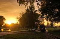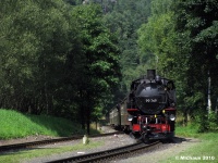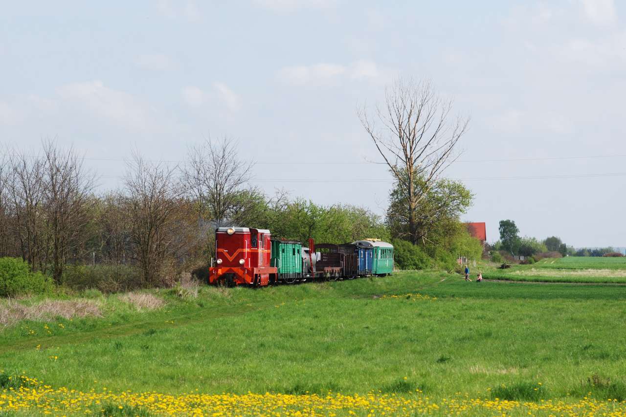 Lxd2-333 na wyjeździe z Pińczowa z pociągiem specjalnym zorganizowanym przez Stowarzyszenie Miłośników Kolei w Krakowie na Świętokrzyskiej Kolejce Dojazdowej.