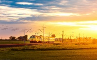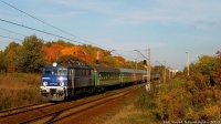 Siódemka ze składem TLK Słonimski relacji Białystok - Łódź Fabryczna uchwycony chwilę po wyjeździe ze stacji Łapy. W tle budowa terminala kontenerowego.