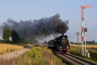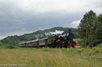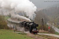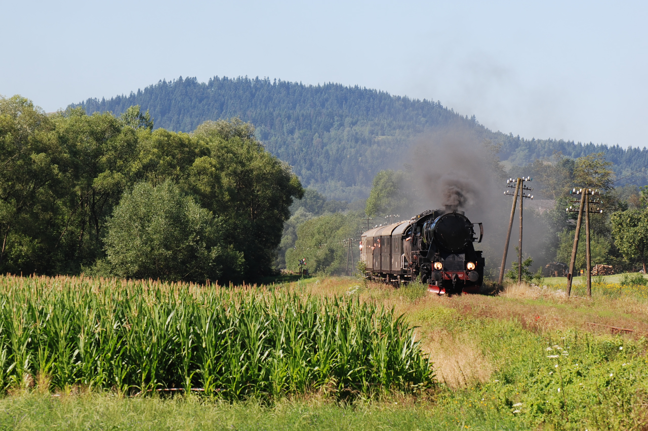Ty42-107 prowadzi pierwszy pociąg specjalny tego dnia w relacji Chabówka - Kasina Wielka.