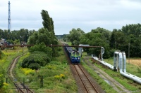ST44-206 z pociągiem TKPS 10682 relacji Chojnice - Terespol Pomorski opuszcza Tucholę po krzyżowaniu z pociągiem Arrivy nr 3327 z Wierzchucina do Chojnic.