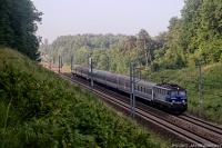 Dziewiątka z pociągiem TLK 13112 "Hańcza" relacji Suwałki/Grodno - Kraków Główny opuszcza stację Łapy.