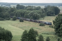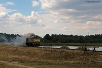 M62M-001 ze składem przemierza szlak Mszczonów-Marków. Ten skład przyjechał łącznicą Szeligi-Marków do Mszczonowa, lokomotywa przepięła się na drugą stronę składu i ruszyła z Mszczonowa w stronę Markowa i Puszczy Mariańskiej.