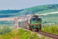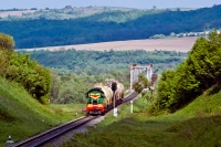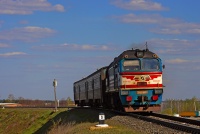 Elektriczka EP2-1020 (ER2-1020) po noclegu w przygranicznych Mościskach wraca w promieniach porannego słońca jako osobowy Mostiska - Lwów. Skład chwilę wcześniej opuścił stację Rodatycze i podąża dalej na wschód, w kierunku Gródka i dalej Lwowa.