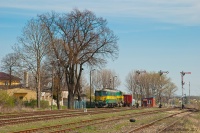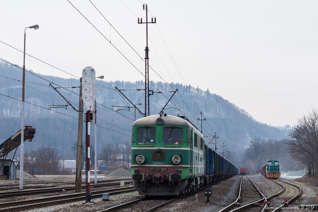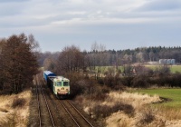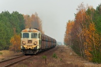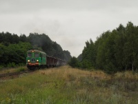 Rumun z ładownym składem węglarek przygotowuje się do wyjazdu ze stacji Bardo Przyłęk w kierunku Kamieńca Ząbkowickiego.