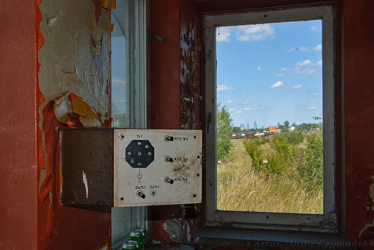 Mamy tu wnętrze budyneczku starszego ustawiacza górki rozrządowej na stacji Warszawa Główna Towarowa. Od kilku lat nie prowadzi się tam rozrządu wagonów (ostatni raz widziałem w sierpniu 2012 r., ale może później jeszcze to funkcjonowało) toteż wszystko zdążyło zarosnąć trawskiem i drzewkami. Typowy rozpiździel następujący po porzuceniu przez kolej swojej własności...