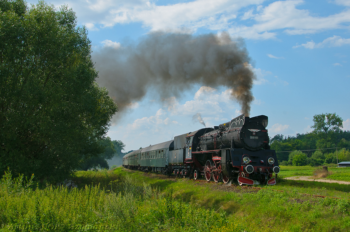 Ol49-69 (ex. 99) z pociągiem RPP 51106 "Sawa" relacji Raciąż - Warszawa Wschodnia na łuczku za Cieksynem udaje skład pociągu 8140 relacji Kołobrzeg - Warszawa Zachodnia. W ostatnim rozkładzie ('84-85) odjeżdżał on z Cieksyna o 18:58, czyli prawie 4 godziny później niż Turkol na obrazku powyżej. Na historycznym marginesie dodam, że drugi "Kołobrzeg" w takiej samej relacji, ale wyjeżdżający ze stacji początkowej wieczorem (zatem dojeżdżający do Nasielska na rano), kursował kilka lat dłużej, do roku 1990. Prowadził też wagony kuszetki i sypialny.