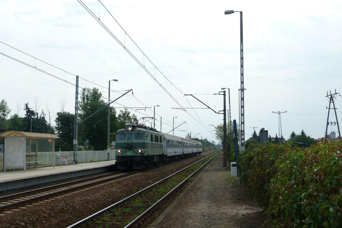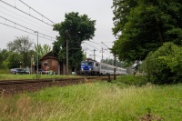 Zielona EP07-174 z pociągiem TLK Klimczok relacji Bielsko Biała Główna - Szczecin Główny przejeżdża przez p.o. Janków Przygodzki.