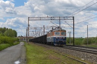 181 002-7 Arkadiusz w duecie z niezidentyfikowaną maszyną prowadzą ciężkie brutto z węglem przejeżdżając przez stację Drawski Młyn. Za kilkaset metrów skład znajdzie się na szlaku do stacji Miały.