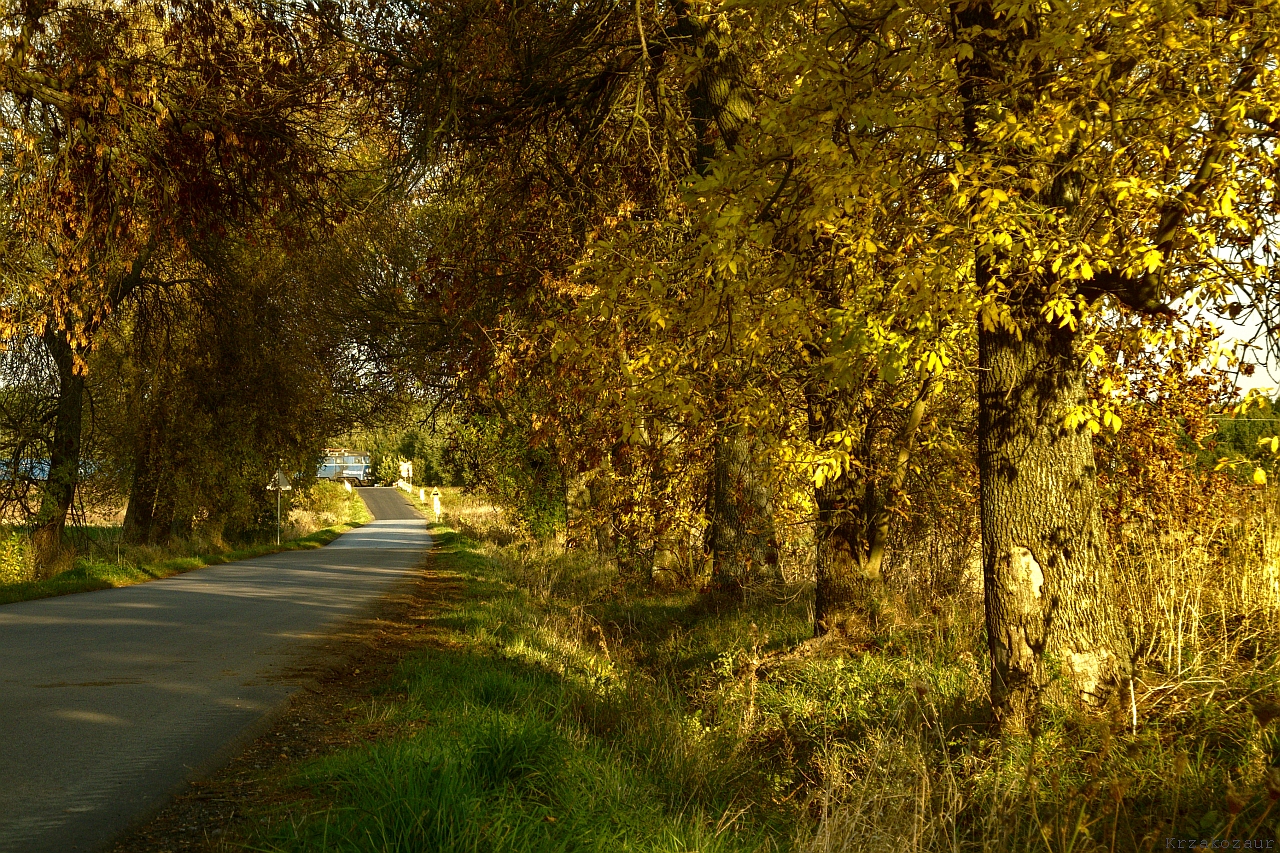Postanowiłem zajechać na przejazd z nadzieją, że pojedzie coś jeszcze. Przejechałem przez przejazd i z racji tego, że nie było gdzie zaparkować pojechałem za te drzewa, gdy wysiadłem z auta i się odwróciłem ukazał mi się ten piękny widok.