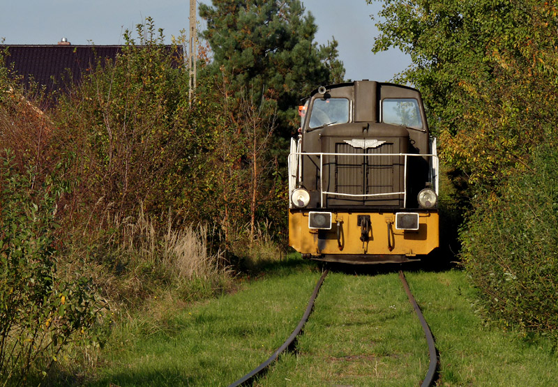 Należąca do Prefabetu maszyna 401Da-312 wpycha na teren zakładowej bocznicy skład kilku węglarek. Był to ostatni kurs tego dnia i jedyny, na który dane mi było się załapać.
