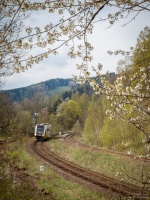 Tego dnia w Jeleniej Górze miała zjawić się słynna suka 47 z pociągiem do Wałbrzycha, który niestety pojechał dopiero po zmorku. Postanowiłem jednak zaczekać na planowy pociąg osobowy i "przetestować" świeżo odkrzaczoną miejscówke ;)