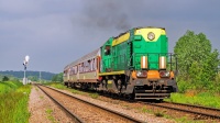 TEM2-146 ze składem węglarek z Działdowa do Sulikowa, przejeżdża przez stację Niegosławice.